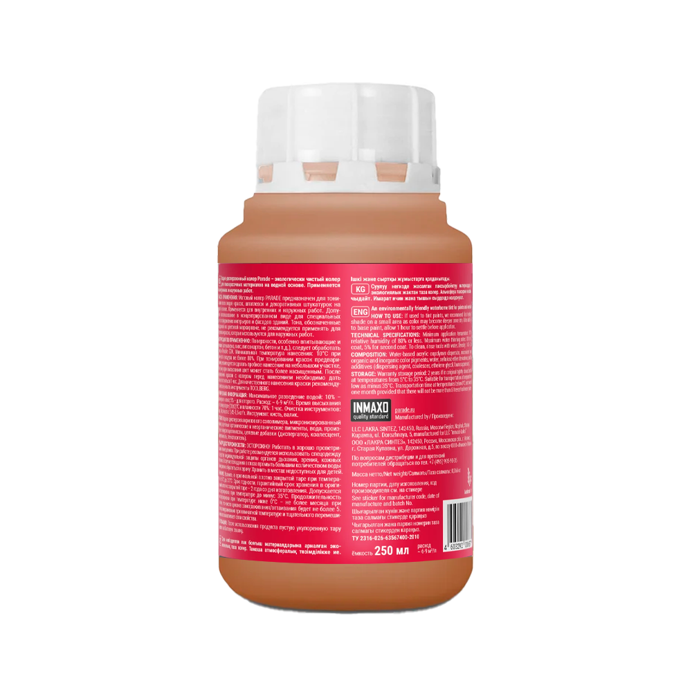 Для внутренних и наружных работ. Предназначен для тонирования всех видов красок, шпатлевок и декоративных штукатурок на водной основе. Допускает использование в концентрированном виде для специальных случаев оформления интерьеров и фасадов зданий.