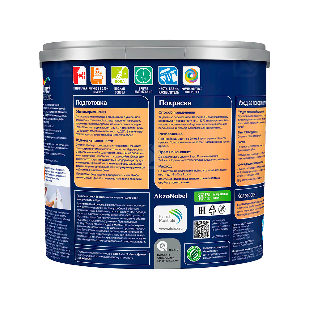 Экстрапрочная матовая водно-дисперсионная краска для высококачественной отделки стен и потолков в помещениях с высокой эксплуатационной нагрузкой, таких как гостиные, коридоры, офисы, детские сады, школы, медицинские учреждения и др. Тиксотропная: наносится без брызг и потеков, легко разравнивается, с нейтральным запахом.