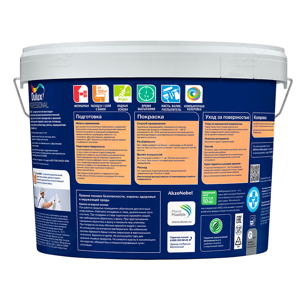Экстрапрочная матовая водно-дисперсионная краска для высококачественной отделки стен и потолков в помещениях с высокой эксплуатационной нагрузкой, таких как гостиные, коридоры, офисы, детские сады, школы, медицинские учреждения и др. Тиксотропная: наносится без брызг и потеков, легко разравнивается, с нейтральным запахом.