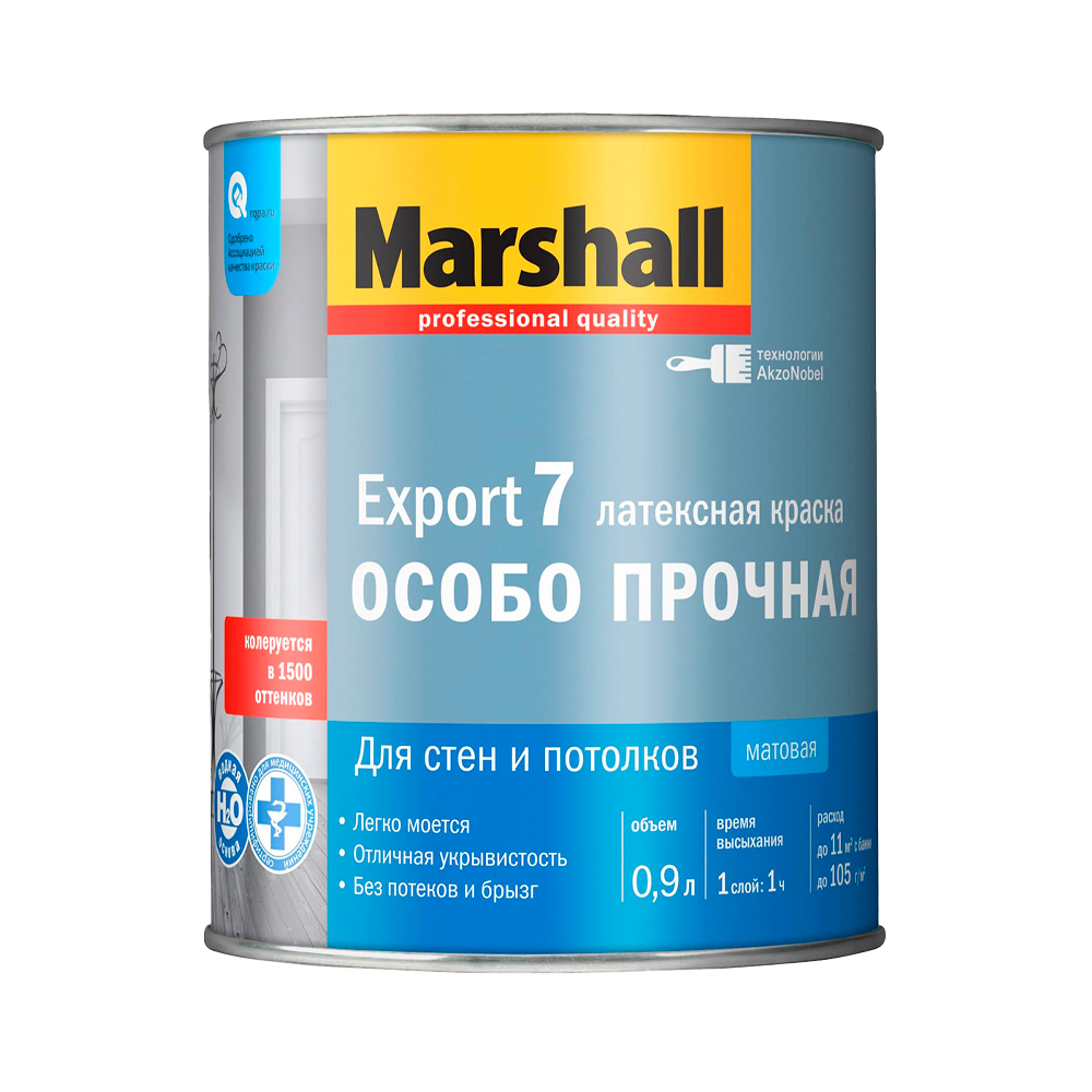 Краска Marshall Export-7 водно-дисперсионная для стен и потолков матовая база BW ( 0,9л)
